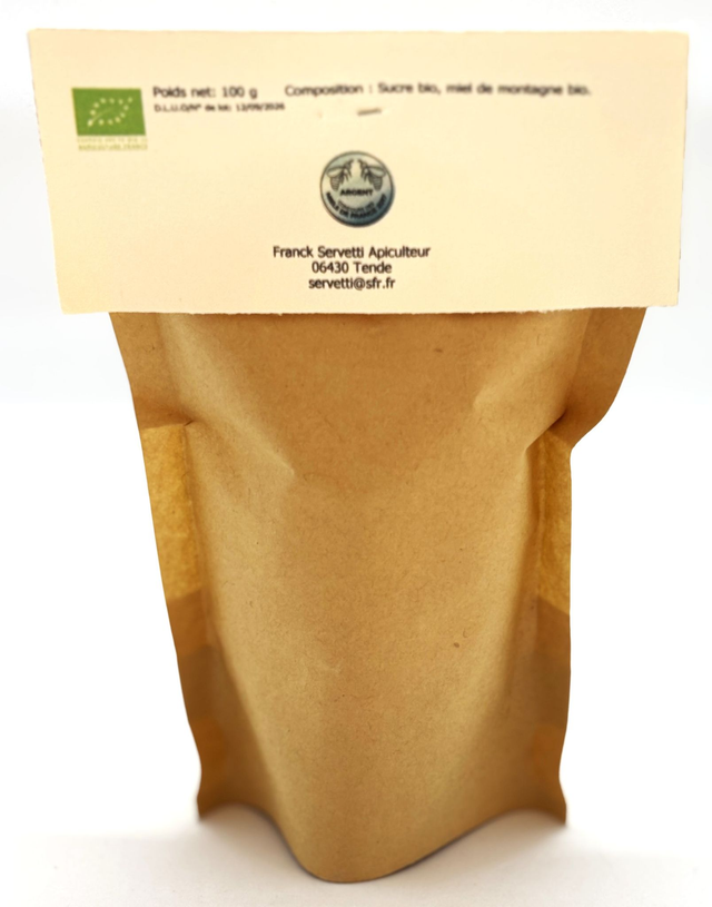 Véritable bonbons au miel. Composé de 50% de notre miel de montagne et de sucre.